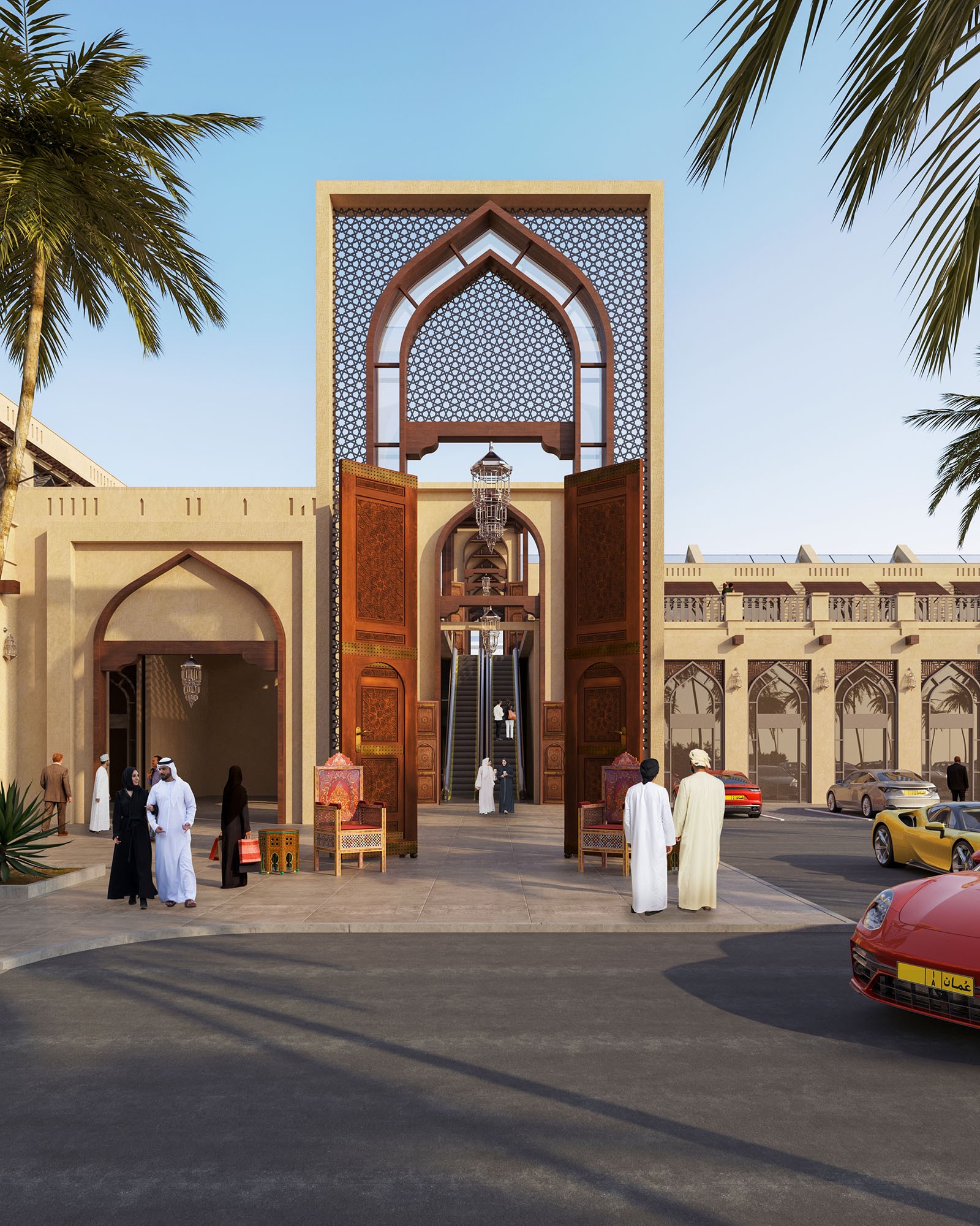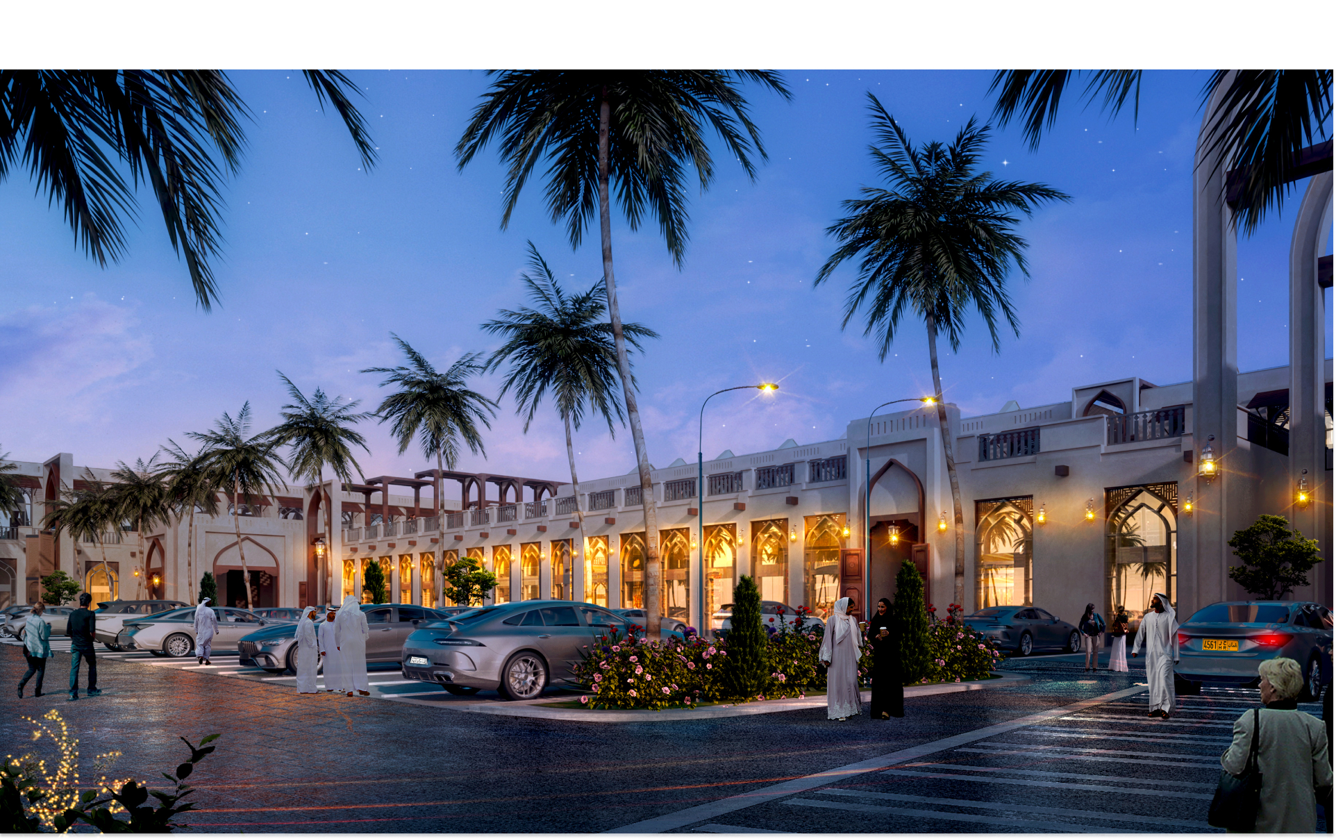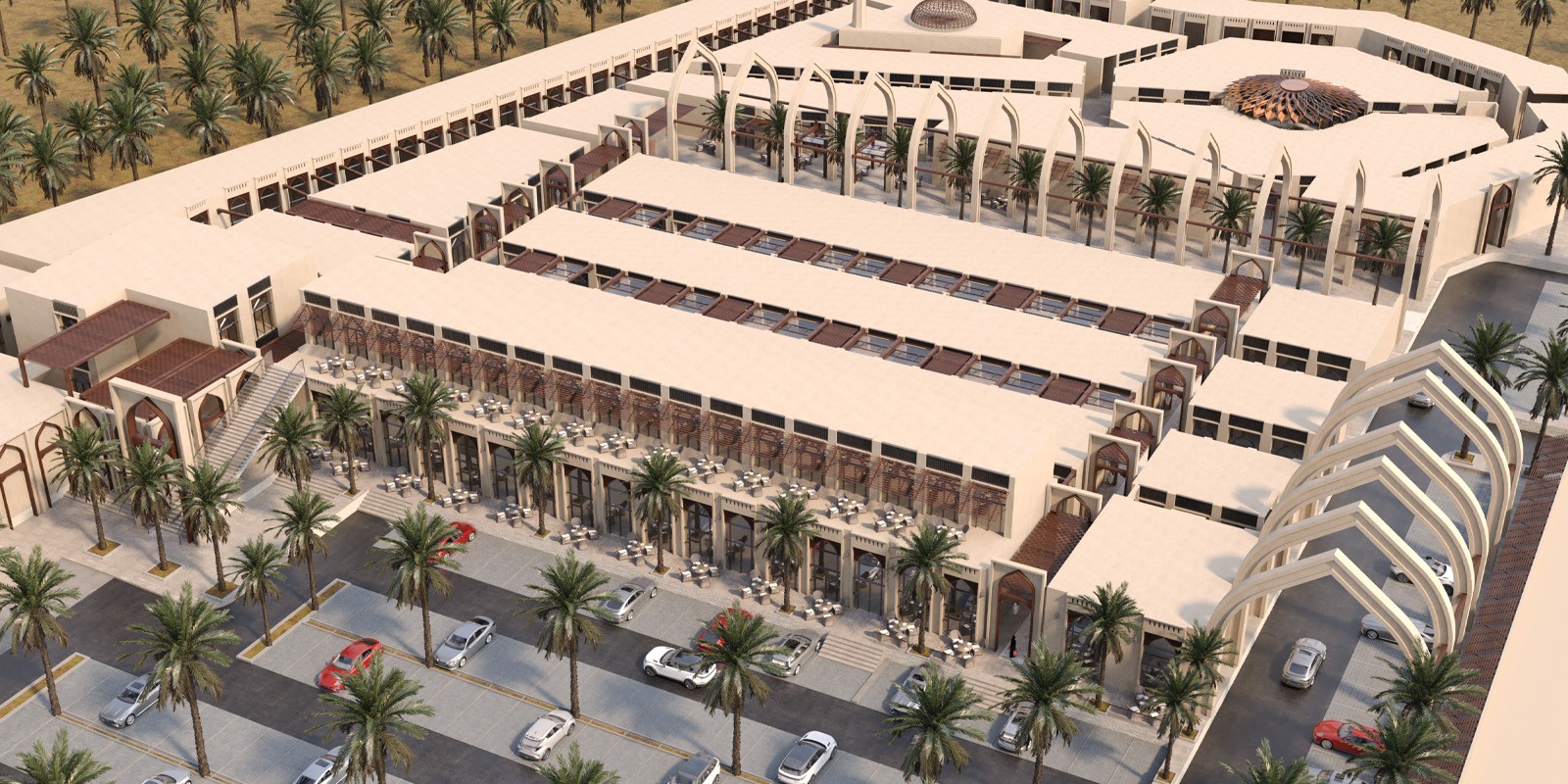 كما يضم بازار قرابة 64 مطعم ومقهى، وهايبر ماركت بمساحة 1700 م2 ومسجد مصمم بالطراز النجدي على مساحة 1300 م2