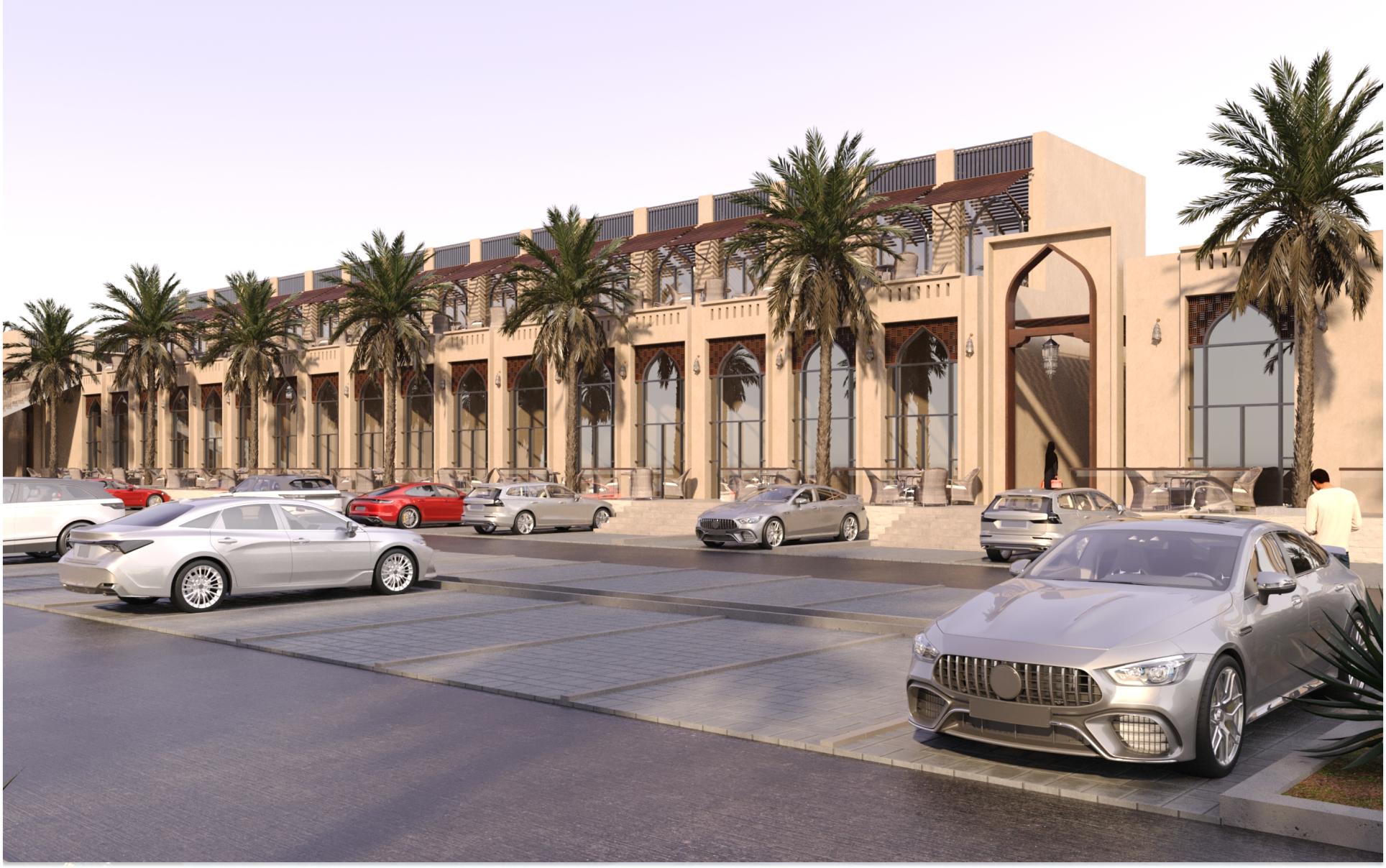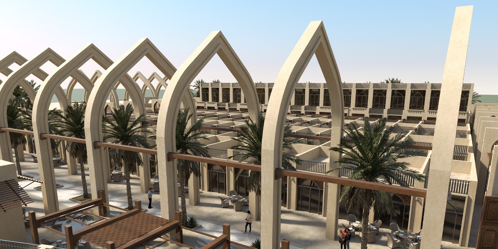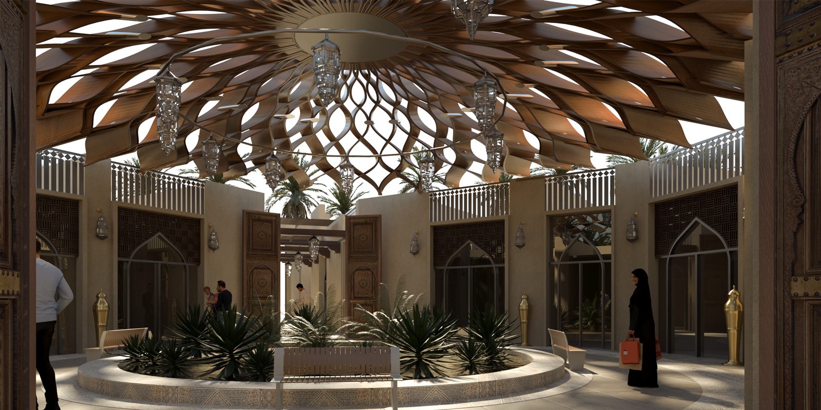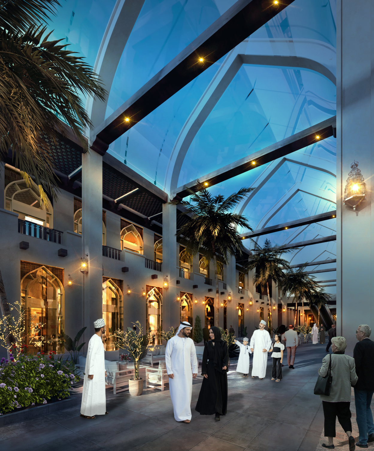 كما يضم بازار قرابة 64 مطعم ومقهى، وهايبر ماركت بمساحة 1700 م2 ومسجد مصمم بالطراز النجدي على مساحة 1300 م2